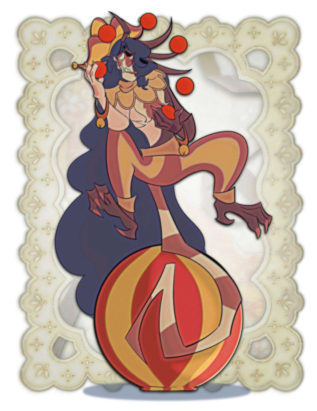 The Ruler of Bandon-tail and the Kingdom of Paracosm!The King is a very generous and fair monarch who boasts of a past life in which he defeated two terrible beings that eventually became his Advisor and his Jester..It’s true! The whole Kingdom’s seen it! And the many tapestries and stained glass windows upheld in the palace speak of his many victories!He is always eager to greet and mingle with the recovered subjects of his Kingdom. Thanks to his Advisor, he never runs out of people to play with!